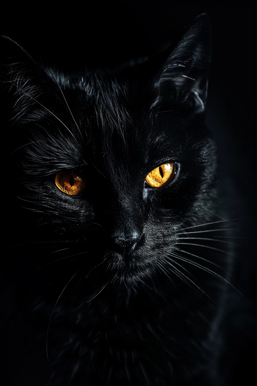 This striking illustration features a minimalist black cat with glowing eyes, set against a dark background that creates a high-contrast effect. The simplicity of the design enhances the mysterious mood, making it a captivating piece for any space. The aesthetic composition draws the eye, inviting viewers to explore the enigmatic charm of this feline figure.