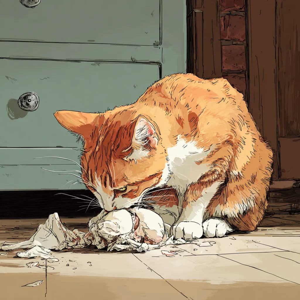 This delightful image can serve as inspiration for your own cat-themed decor. Whether you’re looking to create a cozy reading corner or a stylish dining space, the mood captured here encourages a sense of comfort and joy. Let this charming depiction of a cat dining elevate your home aesthetic, making every meal a moment to cherish.