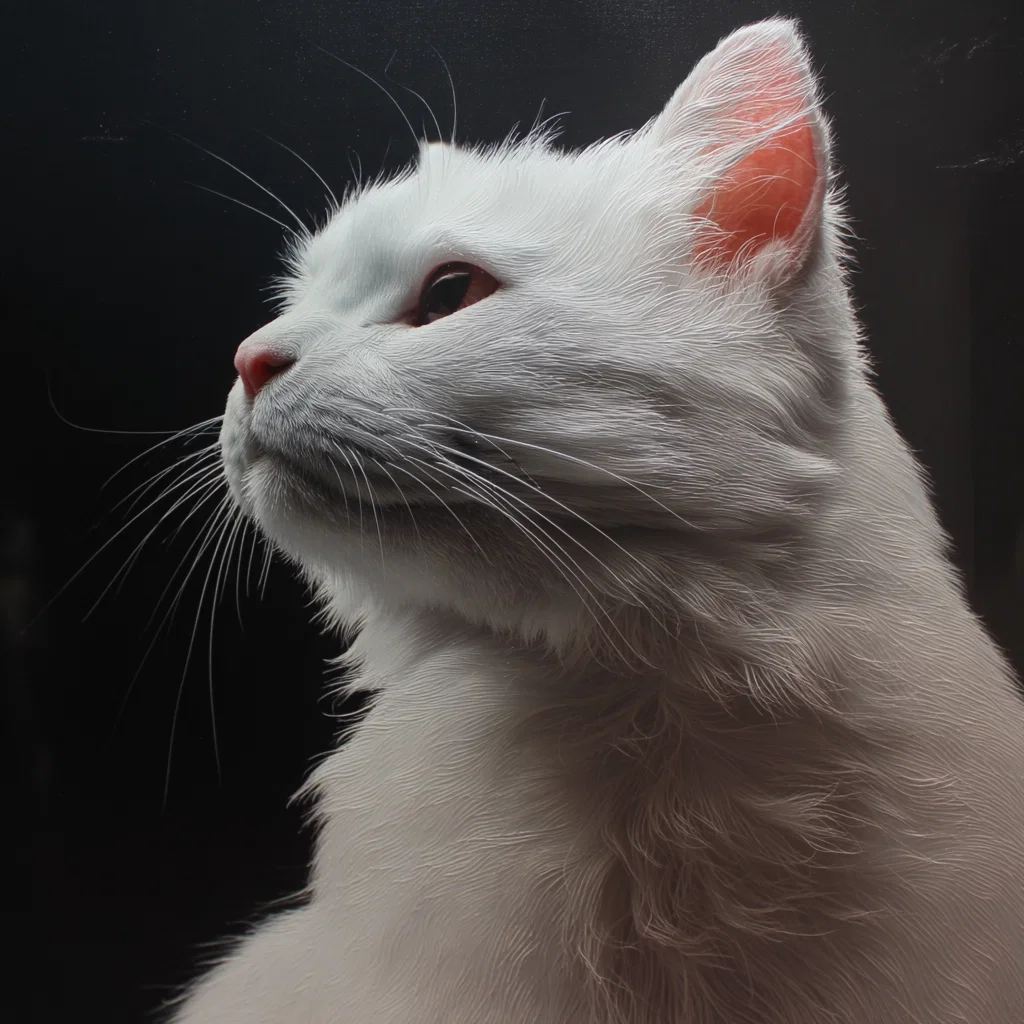 This photo-realistic image captures the essence of a charming white cat, perfectly embodying the cozy and inviting atmosphere you want in your home. With its soft fur and expressive eyes, this feline friend adds a touch of warmth and personality to any space. Imagine this delightful cat lounging in a sunlit corner or playfully perched on a windowsill, bringing life and joy to your decor.