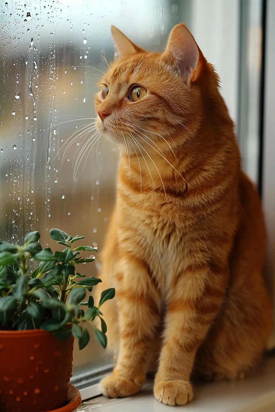 Cozy kitten on windowsill with latte and rainy view captures the essence of slow living. This serene scene showcases a soft, calming atmosphere perfect for relaxation and reflection. Imagine curling up with a warm drink while watching raindrops dance on the glass, creating the ideal backdrop for unwinding after a long day. Perfect for anyone seeking inspiration for a tranquil home aesthetic or looking to embrace a peaceful lifestyle. Discover how to create your own cozy corner and enjoy the simple pleasures of life.