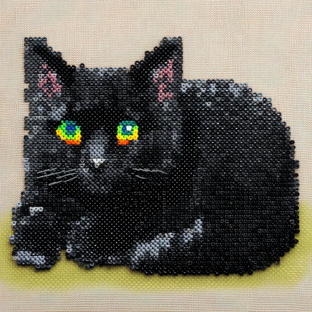 This delightful bead pattern features a charmingly plump Black cat that’s sure to bring a smile to anyone’s face. With its round body and playful expression, this illustration captures the essence of cozy feline companionship. The whimsical design makes it a perfect addition to your home decor, adding a touch of personality to any space.