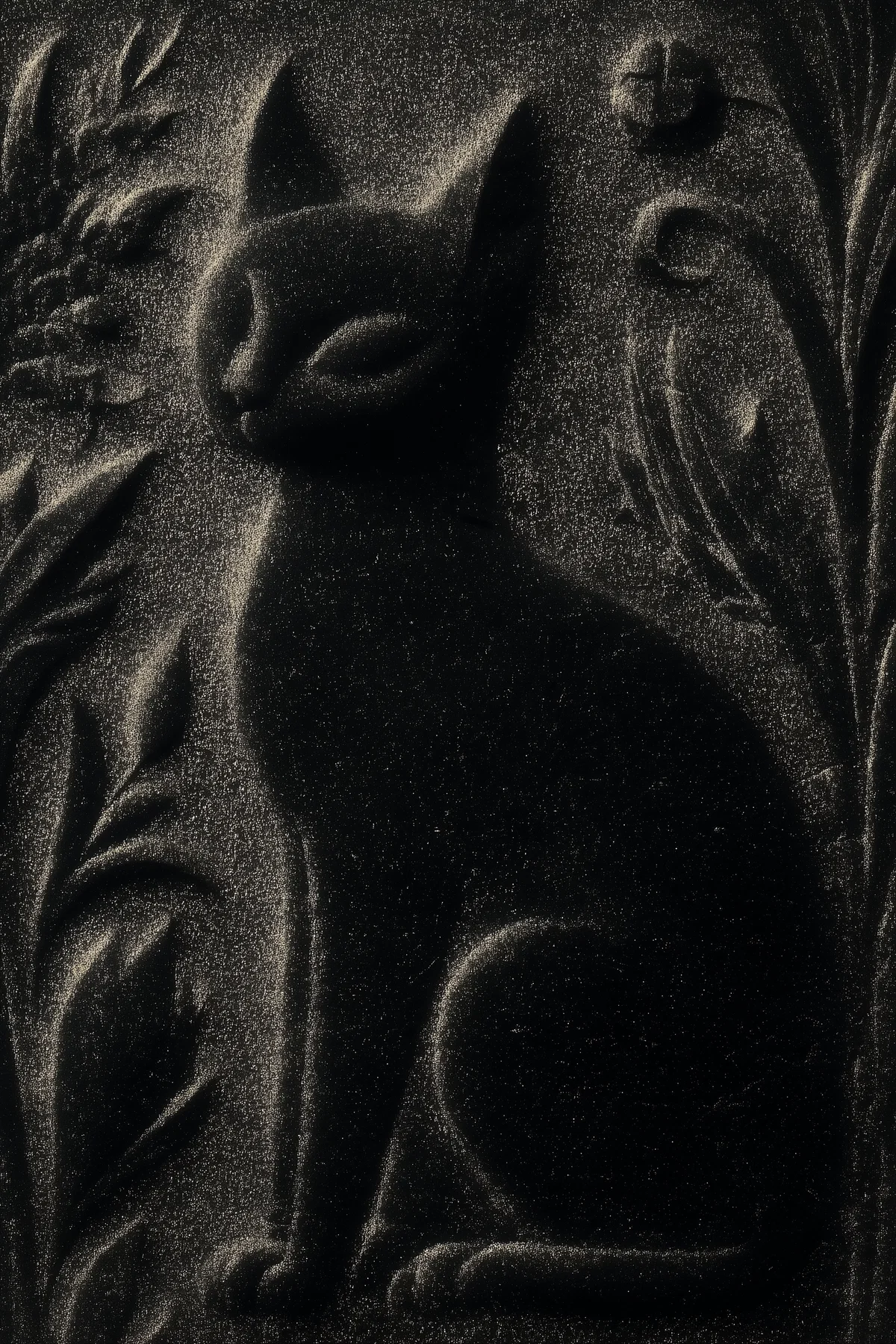 This charming black cat illustration captures the essence of medieval artistry with a modern minimalist twist. The engraving showcases the sleek silhouette of a feline, emphasizing its graceful form against a simple backdrop. The delicate lines and subtle details create a captivating piece that appeals to both cat lovers and fans of vintage decor.