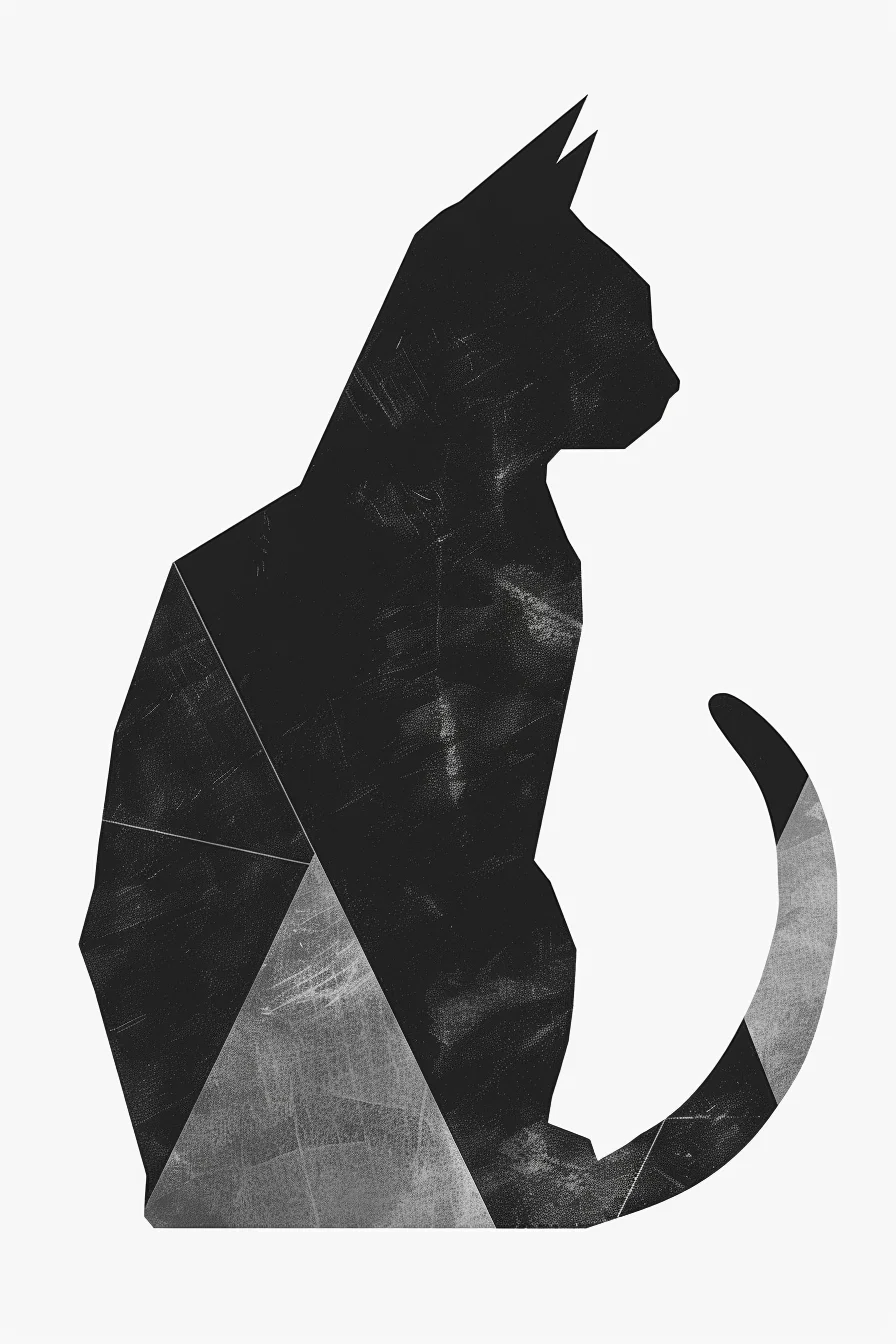 This striking black and white geometric cat illustration brings a modern touch to any space. With its abstract shapes and high contrast design, it effortlessly captures attention while maintaining a minimalist aesthetic. The clean lines and bold patterns make it a perfect piece for those who appreciate contemporary art and simple elegance.