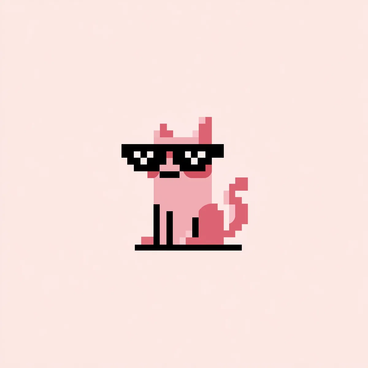 There’s this cool minimalist icon of a pink cat that really stands out. It has these sleek black pixel sunglasses that give it a fun, edgy vibe. The cat’s expression is quirky and a bit smug, like it knows something you don’t. It’s definitely got personality!