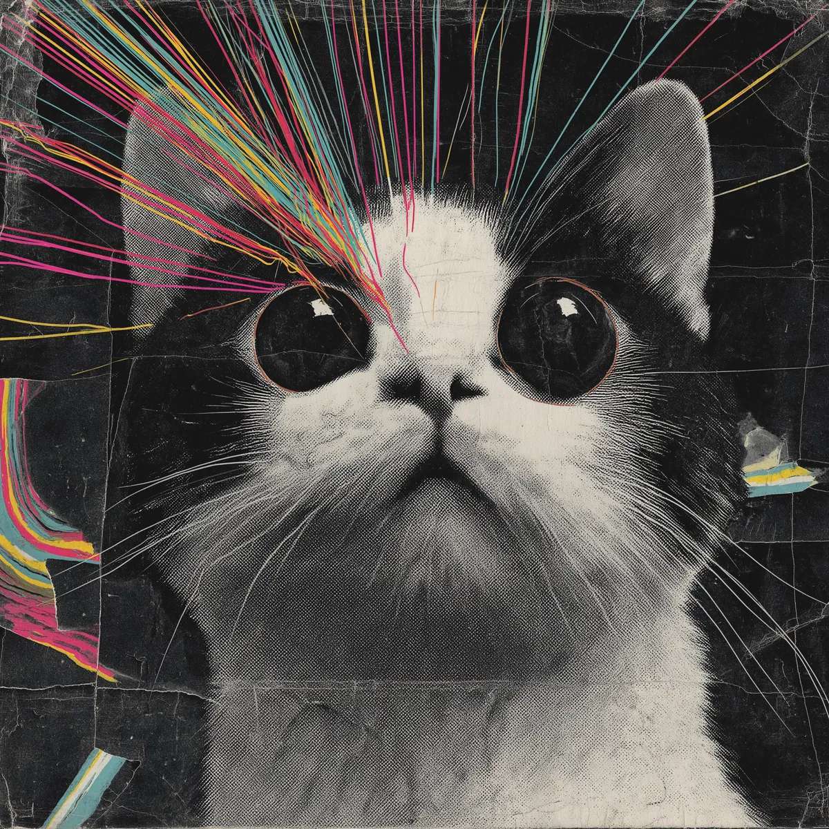Perfect for cat lovers and those who enjoy a touch of melancholy in their decor, this artwork adds a whimsical yet poignant vibe to any space. Whether you hang it in a cozy reading nook, a music corner, or a home office, it creates an inviting atmosphere that sparks conversation. The combination of modern aesthetics and heartfelt emotion makes it a standout piece.