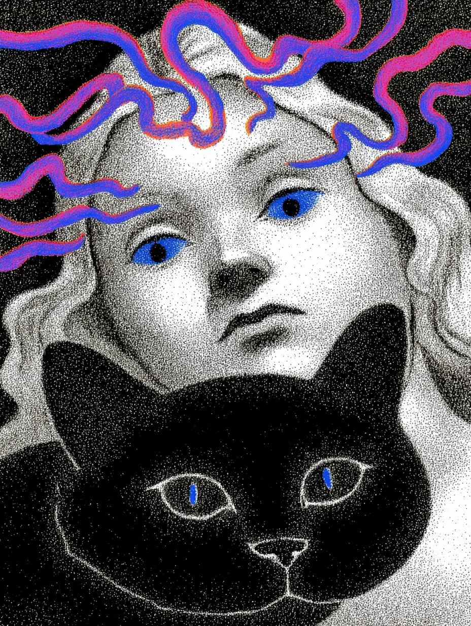 Imagine a cozy corner of your home transformed into a mystical retreat, where dreams and the spiritual world come alive through art. This enchanting illustration features a girl lost in thought, her vibrant imagination swirling with colors and ideas, while a sleek black cat lounges nearby, adding an air of mystery and charm. The combination of these elements creates a captivating atmosphere that invites you to explore your own dreams.