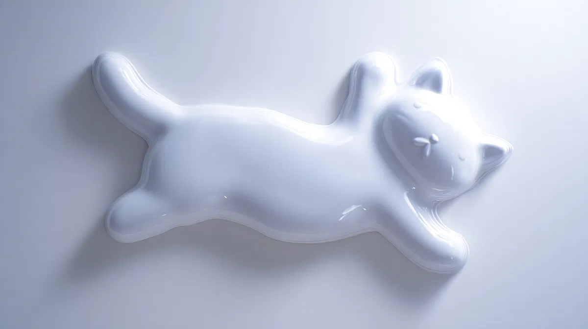 This charming image features a top view of a stretched, cartoon-style cat crafted from FRP, radiating a pure white hue against a clean white background. The simplicity of the design captures the essence of minimalism, making it an eye-catching piece for any modern decor. The playful yet sophisticated aesthetic is reminiscent of James Tourel’s style, bringing a touch of whimsy to your space.