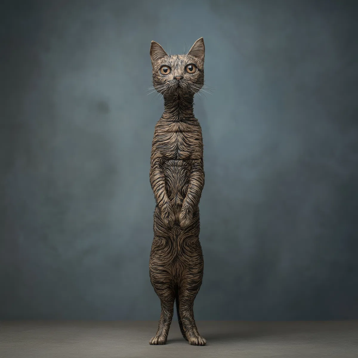 This image is not just a piece of art; it’s a conversation starter. Whether you’re decorating a cat-themed room or simply looking to add some character to your home, this weird cat photography is a fantastic choice. Embrace the charm of this quirky creature and let it inspire a cozy, inviting environment that celebrates your love for cats and creativity.