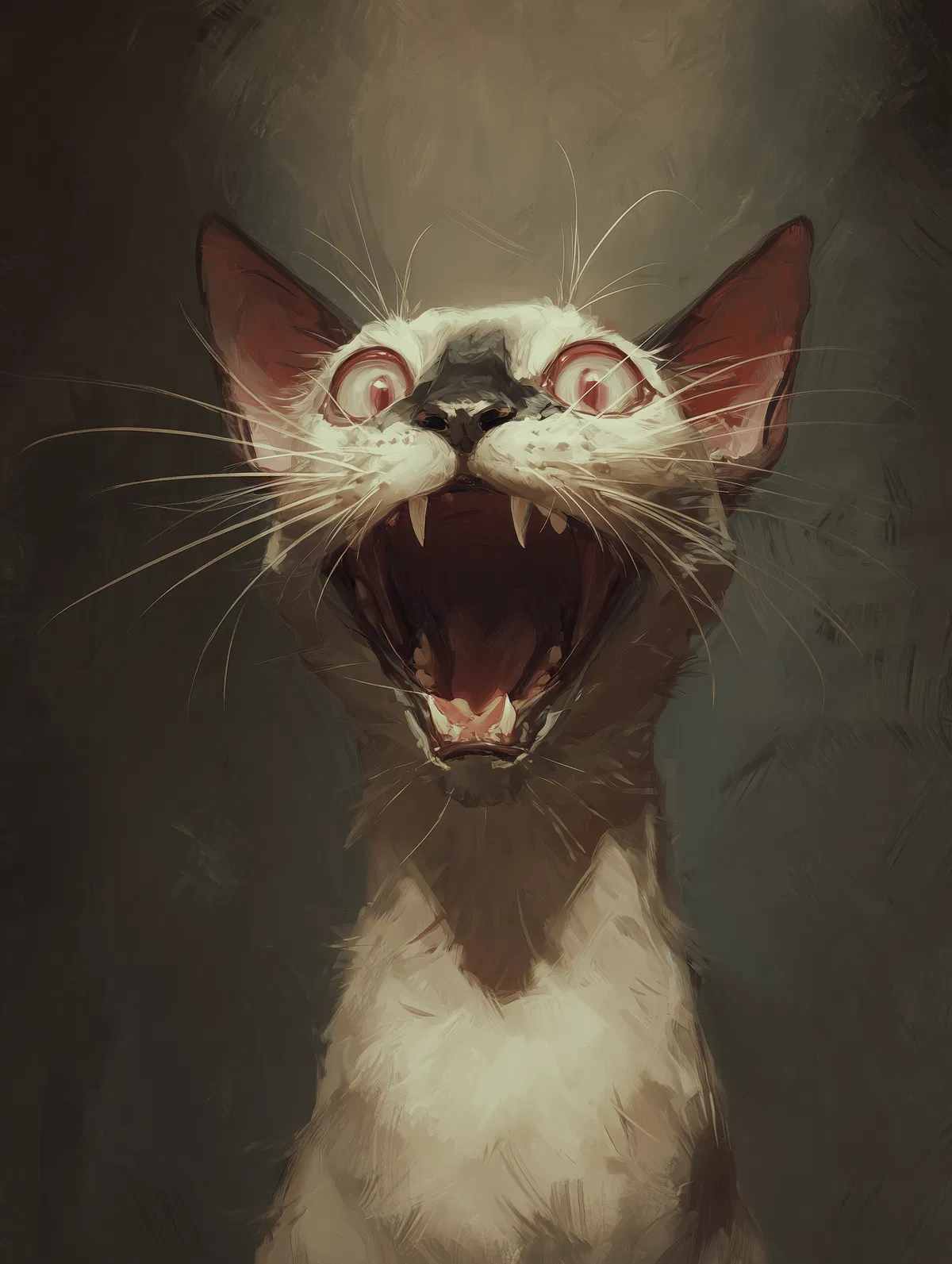 This whimsical illustration features a cat with an exaggerated facial expression, perfectly capturing the playful spirit of the Vampirepunk aesthetic. With its quirky style and vibrant colors, this artwork brings a touch of humor and charm to any space. The cat’s wide eyes and mischievous grin make it an instant conversation starter, ideal for those who appreciate unique and fun decor.