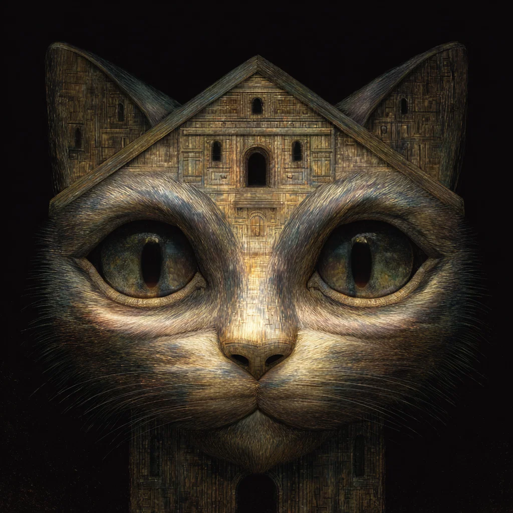 Step into a whimsical world where feline charm meets cozy home vibes. This delightful illustration features a humanoid cat peeking out from a charming house, perfectly capturing the playful spirit of cat lovers everywhere. The soft color palette and adorable design evoke a sense of warmth, making it an ideal addition to any cat-themed decor.